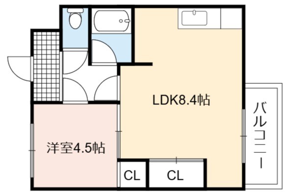 | 間取り詳細 | LDK 8.4畳 、 洋室 4.5畳 |