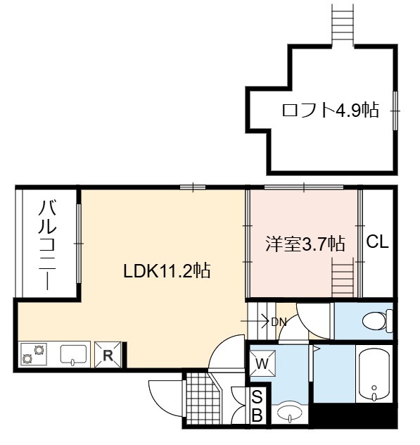 | 間取り詳細 | LDK 11.2畳 、 洋室 3.7畳 |