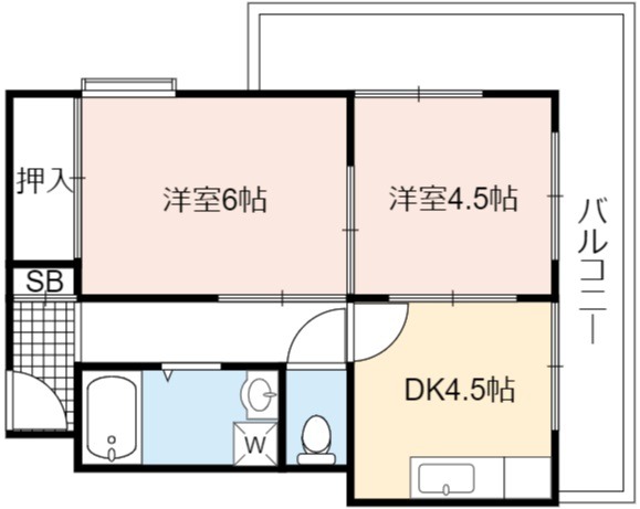 | 間取り詳細 | DK 4.5畳 、 洋室 6畳 、 洋室 4.5畳 |