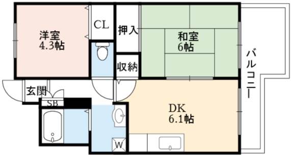 | 間取り詳細 | LDK 6.1畳 、 和室 6畳 、 洋室 4.3畳 |