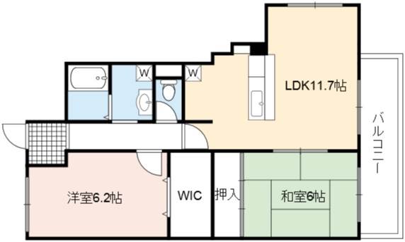 | 間取り詳細 | LDK 11.7畳 、 洋室 6.2畳 、 和室 6畳 |