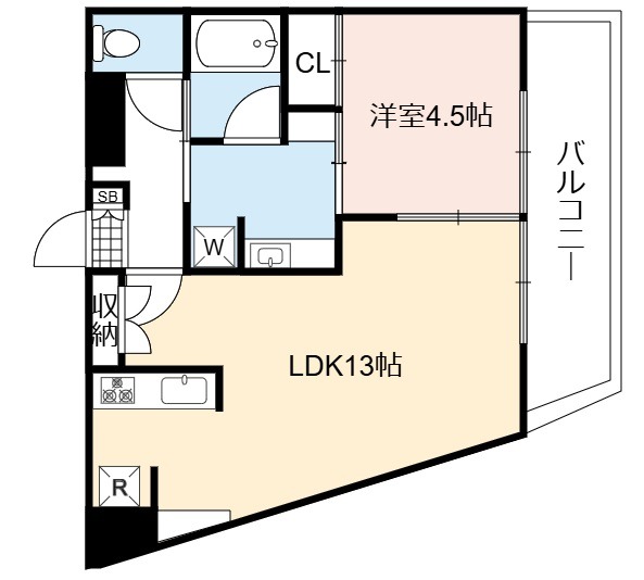 | 間取り詳細 | LDK 13畳 、 洋室 4.5畳 |