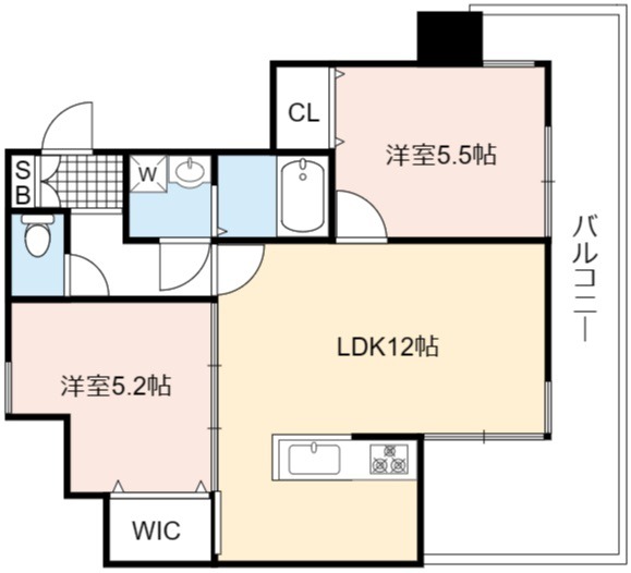 | 間取り詳細 | LDK 12畳 、 洋室 5.5畳 、 洋室 5.2畳 |