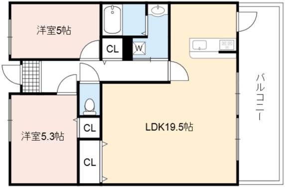 | 間取り詳細 | LDK 19.5畳 、 和室 5.3畳 、 洋室 5畳 |