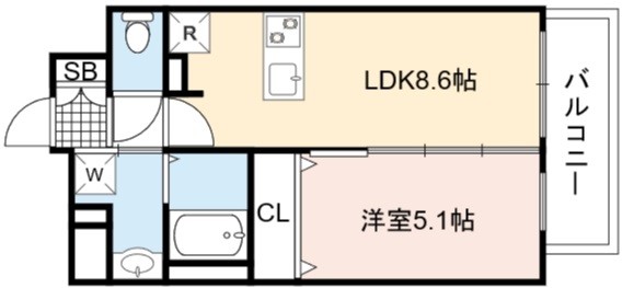 | 間取り詳細 | LDK 8.6畳 、 洋室 5.1畳 |