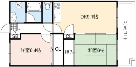 | 間取り詳細 | LDK 9.1畳 、 洋室 6.4畳 、 和室 6畳 |