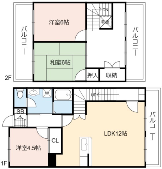 | 間取り詳細 | LDK 12畳 、 洋室 6畳 、 和室 6畳 、 洋室 4.5畳 |