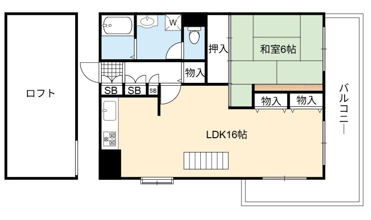 | 間取り詳細 | LDK 16畳 、 和室 6畳 |