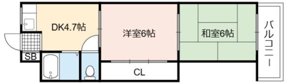 | 間取り詳細 | DK 4.7畳 、 洋室 6畳 、 和室 6畳 |