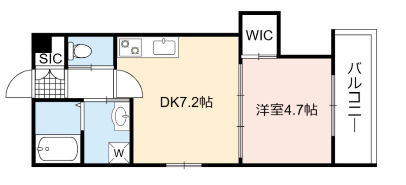 | 間取り詳細 | DK 7.2畳 、 洋室 4.7畳 |