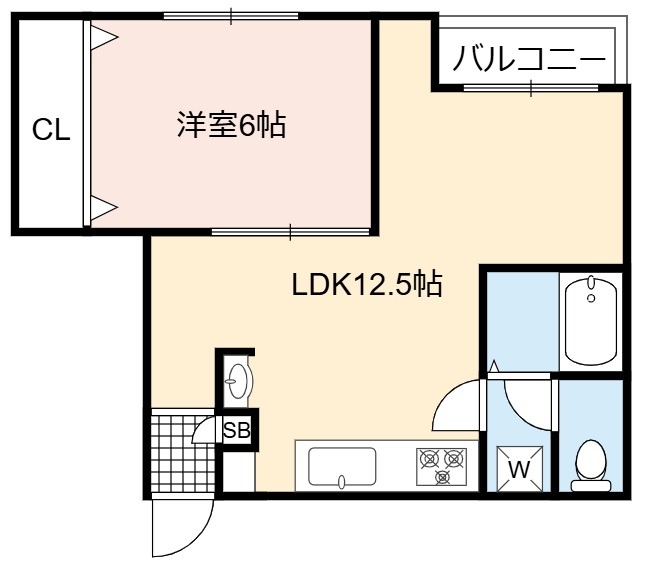 | 間取り詳細 | LDK 12.5畳 、 洋室 6畳 |