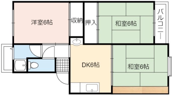 | 間取り詳細 | DK 6畳 、 洋室 6畳 、 和室 6畳 、 和室 6畳 |