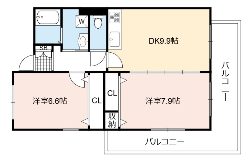 | 間取り詳細 | DK 9.9畳 、 洋室 7.9畳 、 洋室 6.6畳 |