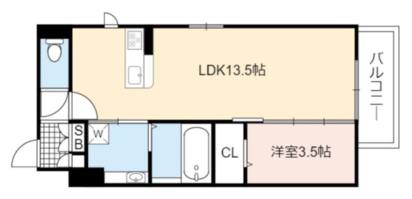| 間取り詳細 | LDK 13.5畳 、 洋室 3.5畳 |