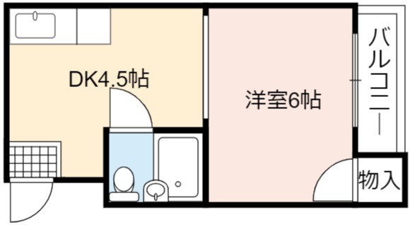 | 間取り詳細 | DK 4.5畳 、 洋室 6畳 |