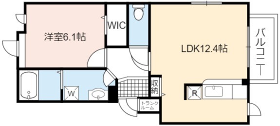| 間取り詳細 | LDK 12.4畳 、 洋室 6.1畳 |