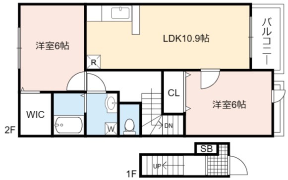 | 間取り詳細 | LDK 10.9畳 、 洋室 6畳 、 洋室 6畳 |