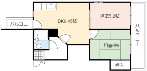 | 間取り詳細 | DK 6.45畳 、 和室 6畳 、 洋室 5.2畳 |