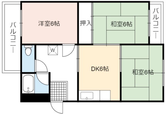 | 間取り詳細 | DK 6畳 、 洋室 6畳 、 和室 6畳 、 和室 6畳 |