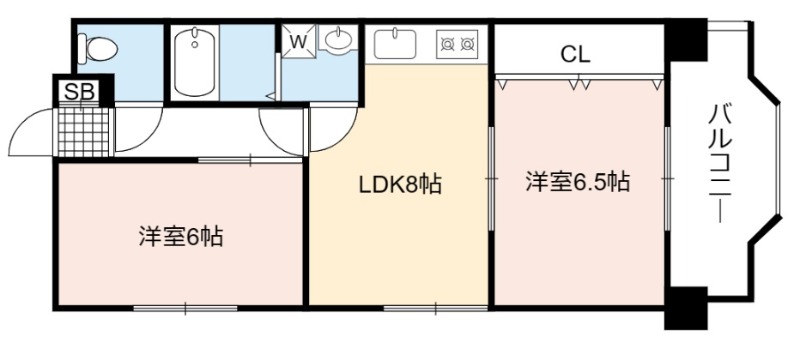 | 間取り詳細 | LDK 8畳 、 洋室 6.5畳 、 洋室 6畳 |
