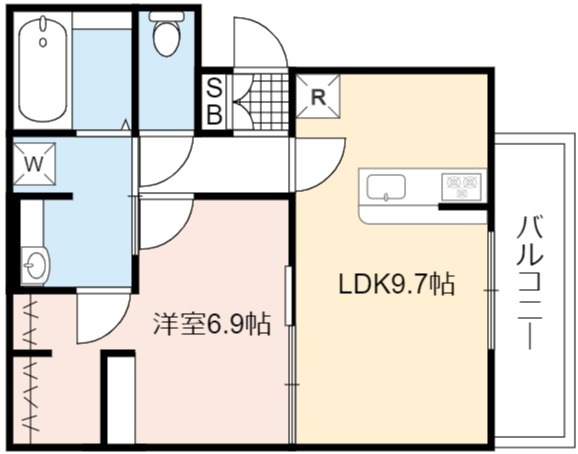 | 間取り詳細 | LDK 9.7畳 、 洋室 6.9畳 |