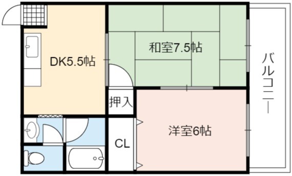 | 間取り詳細 | DK 5.5畳 、 和室 7.5畳 、 洋室 6畳 |