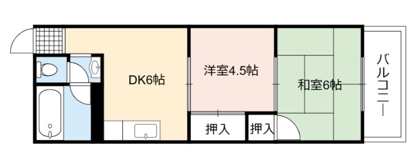 | 間取り詳細 | DK 6畳 、 和室 6畳 、 洋室 4.5畳 |