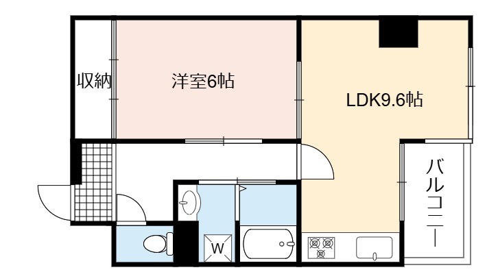 | 間取り詳細 | LDK 9.6畳 、 洋室 6畳 |