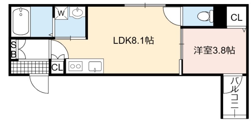 | 間取り詳細 | LDK 8.1畳 、 洋室 3.8畳 |