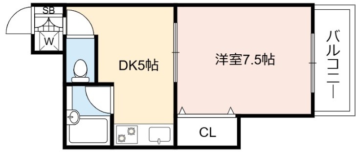 | 間取り詳細 | DK 5畳 、 洋室 7.5畳 |