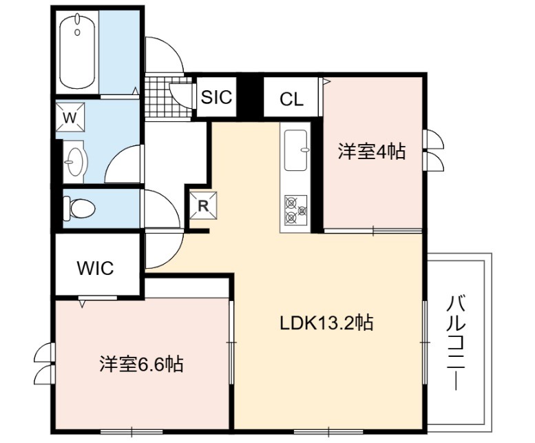 | 間取り詳細 | LDK 13.2畳 、 洋室 6.6畳 、 洋室 4畳 |