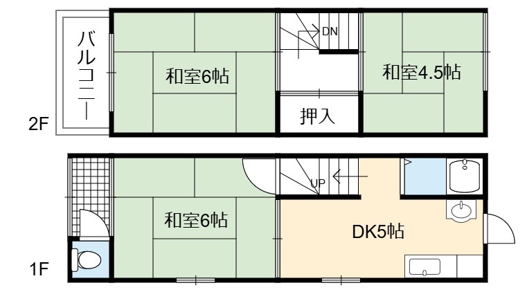 | 間取り詳細 | DK 5畳 、 和室 6畳 、 和室 6畳 、 和室 4.5畳 |