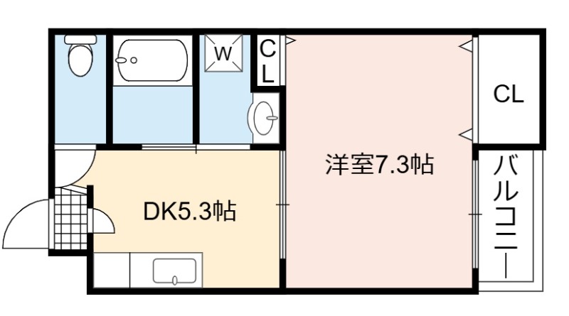 | 間取り詳細 | DK 5.3畳 、 洋室 7.3畳 |