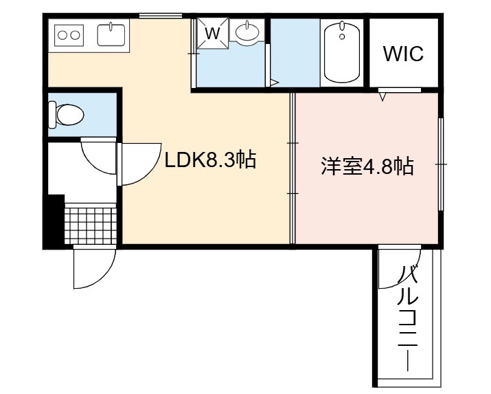 | 間取り詳細 | LDK 8.3畳 、 洋室 4.8畳 |