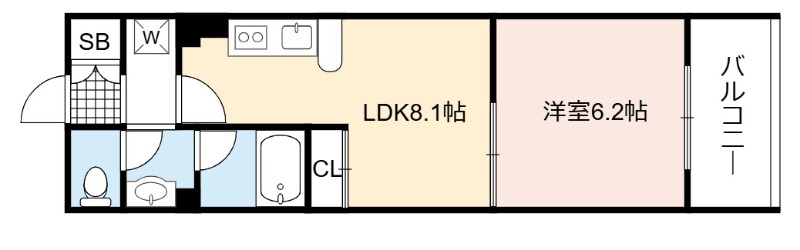 | 間取り詳細 | LDK 8.1畳 、 洋室 6.2畳 |