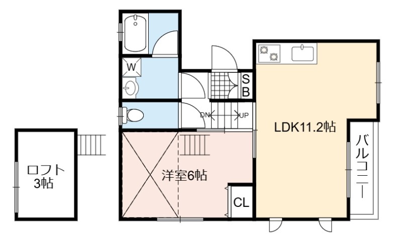 | 間取り詳細 | LDK 11.2畳 、 洋室 6畳 |