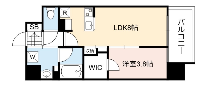 | 間取り詳細 | LDK 8畳 、 洋室 3.8畳 |