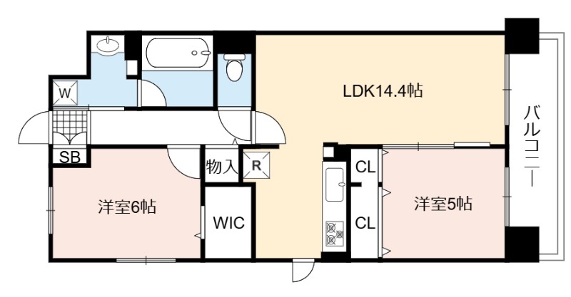 | 間取り詳細 | LDK 14.4畳 、 洋室 6畳 、 洋室 5畳 |