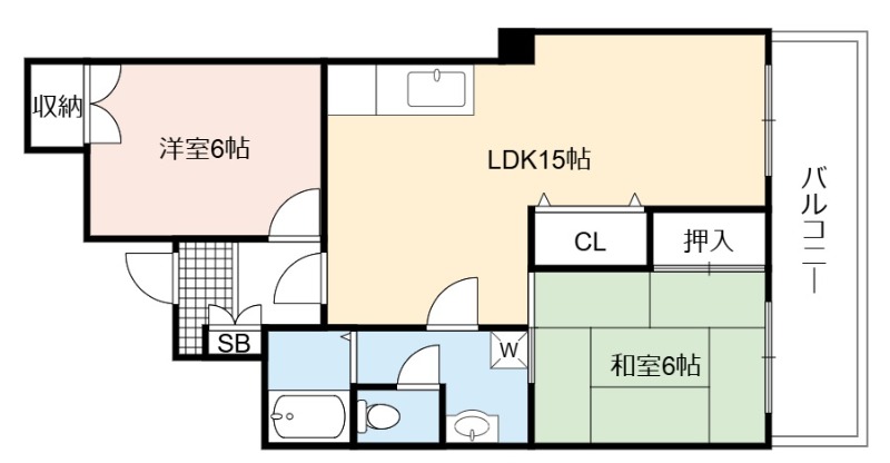 | 間取り詳細 | LDK 15畳 、 洋室 6畳 、 和室 6畳 |