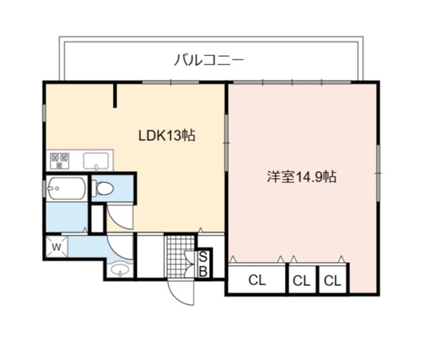 | 間取り詳細 | LDK 13畳 、 洋室 14.9畳 |