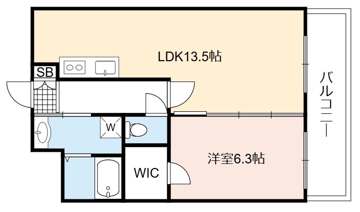 | 間取り詳細 | LDK 13.5畳 、 洋室 6.3畳 |