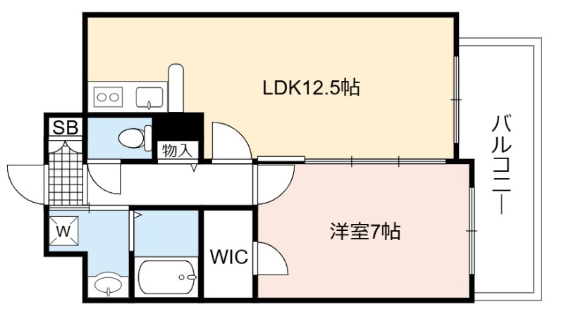 | 間取り詳細 | LDK 12.5畳 、 洋室 7畳 |