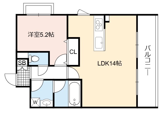 | 間取り詳細 | LDK 14畳 、 洋室 5.2畳 |