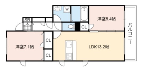 | 間取り詳細 | LDK 13.2畳 、 洋室 7.1畳 、 洋室 5.4畳 |