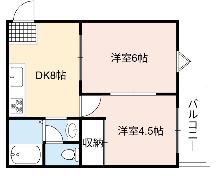 | 間取り詳細 | DK 8畳 、 洋室 6畳 、 洋室 4.5畳 |