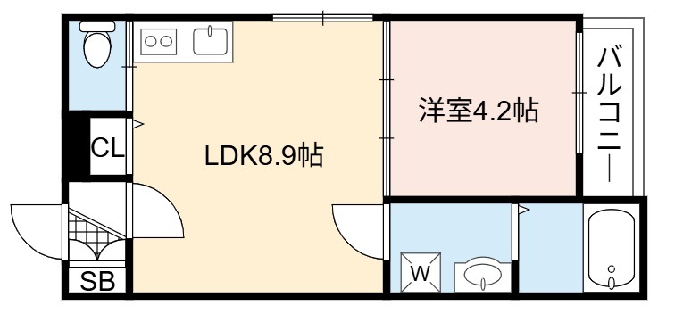 | 間取り詳細 | LDK 8.9畳 、 洋室 4.2畳 |