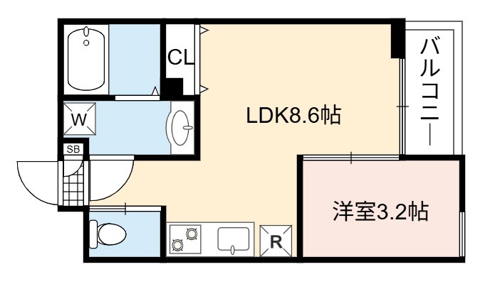 | 間取り詳細 | LDK 8.6畳 、 洋室 3.2畳 |
