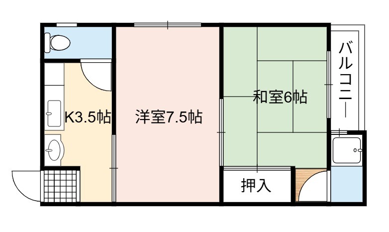 間取り詳細 | 洋室 7.5畳 、 和室 6畳 |