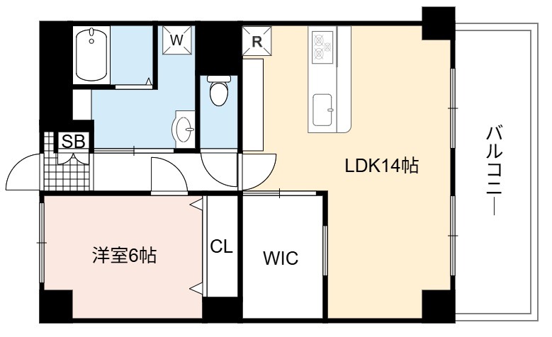 | 間取り詳細 | LDK 14畳 、 洋室 6畳 |