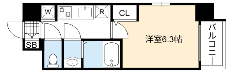 | 1K | 洋室 6.3畳 | 22.47㎡ |